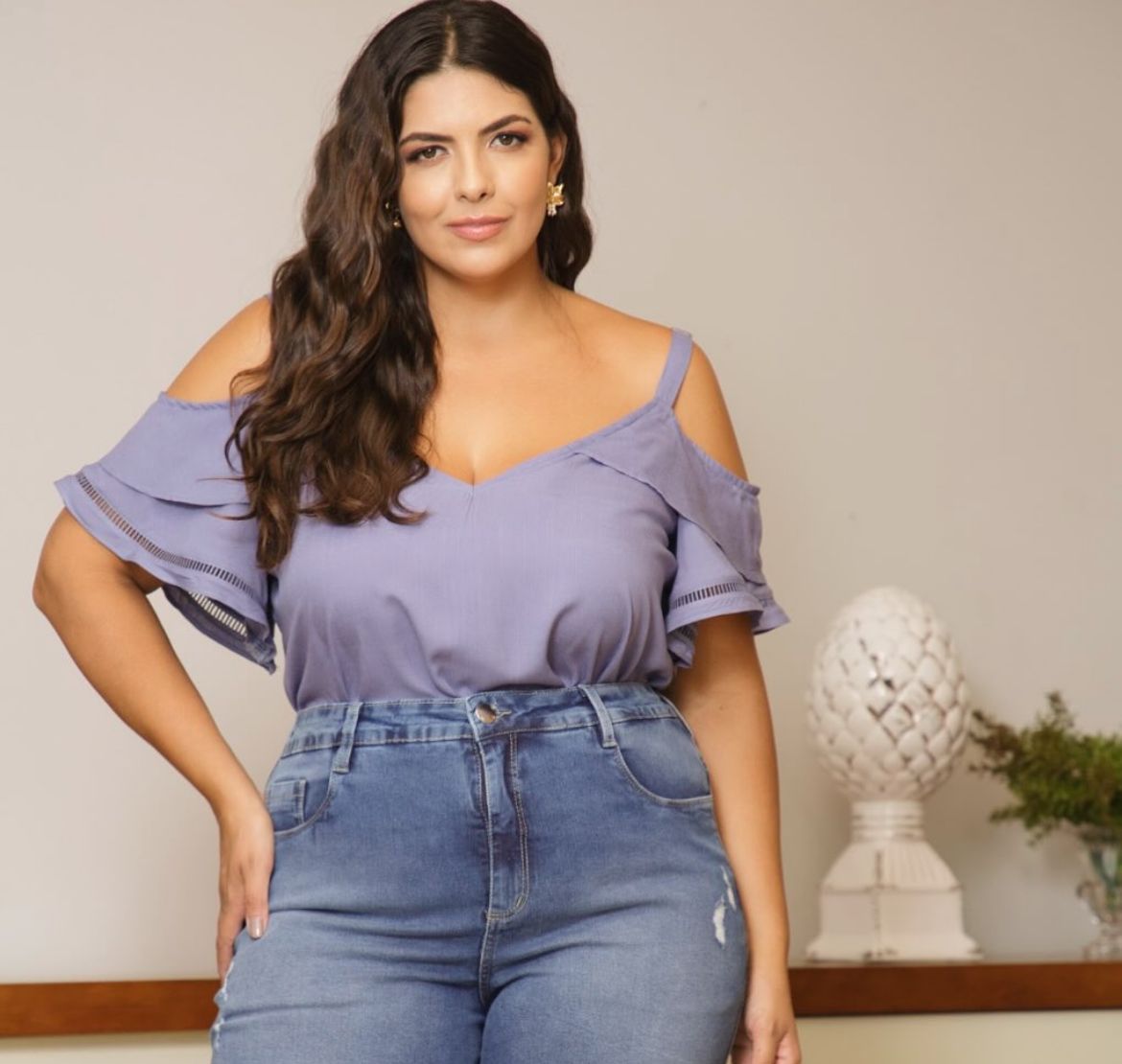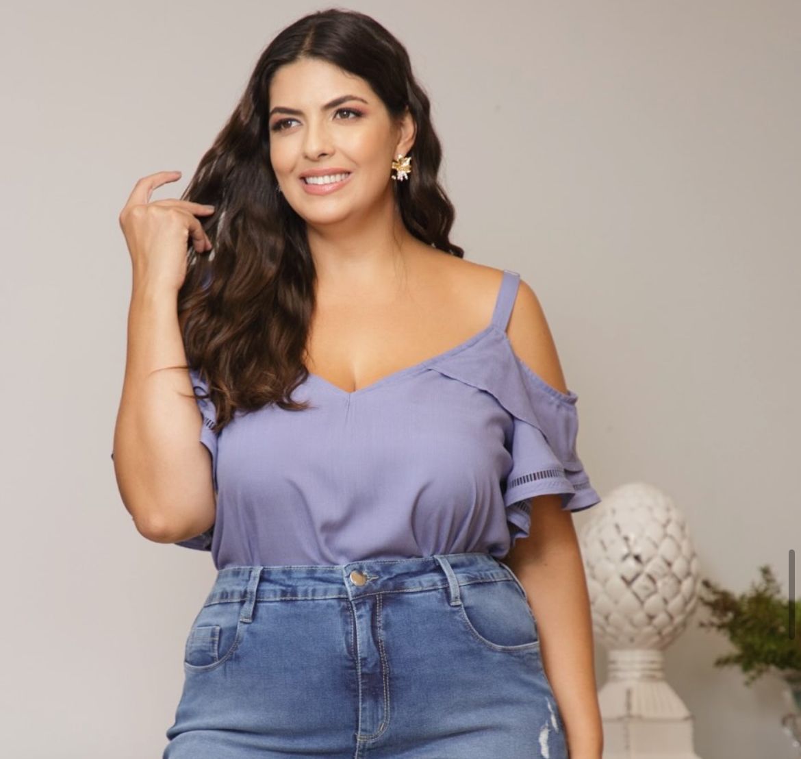 Os babados nas mangas acrescentam movimento e romantismo, dando destaque à parte superior do look. Já o detalhe vazado próximo à barra das mangas traz charme extra e um acabamento mais elaborado. É uma peça versátil, ideal tanto para composições casuais quanto para produções mais arrumadas, dependendo dos acessórios e da escolha da parte de baixo.