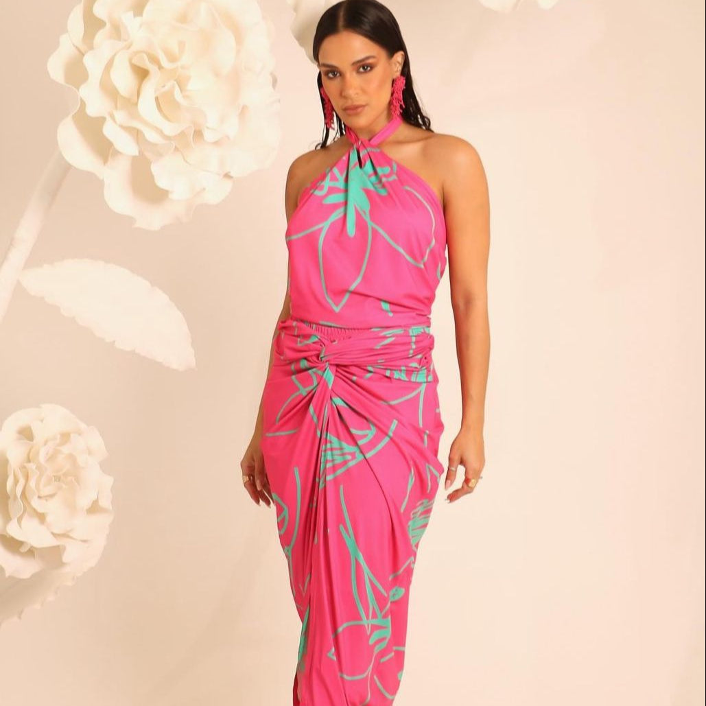 Transforme seu guarda-roupa com nossa blusa deslumbrante frente única em rosa pink, enriquecida com detalhes verdes vibrantes. Este item é a personificação da moda feminina moderna, combinando cores ousadas com um design sedutor para criar uma peça verdadeiramente única.