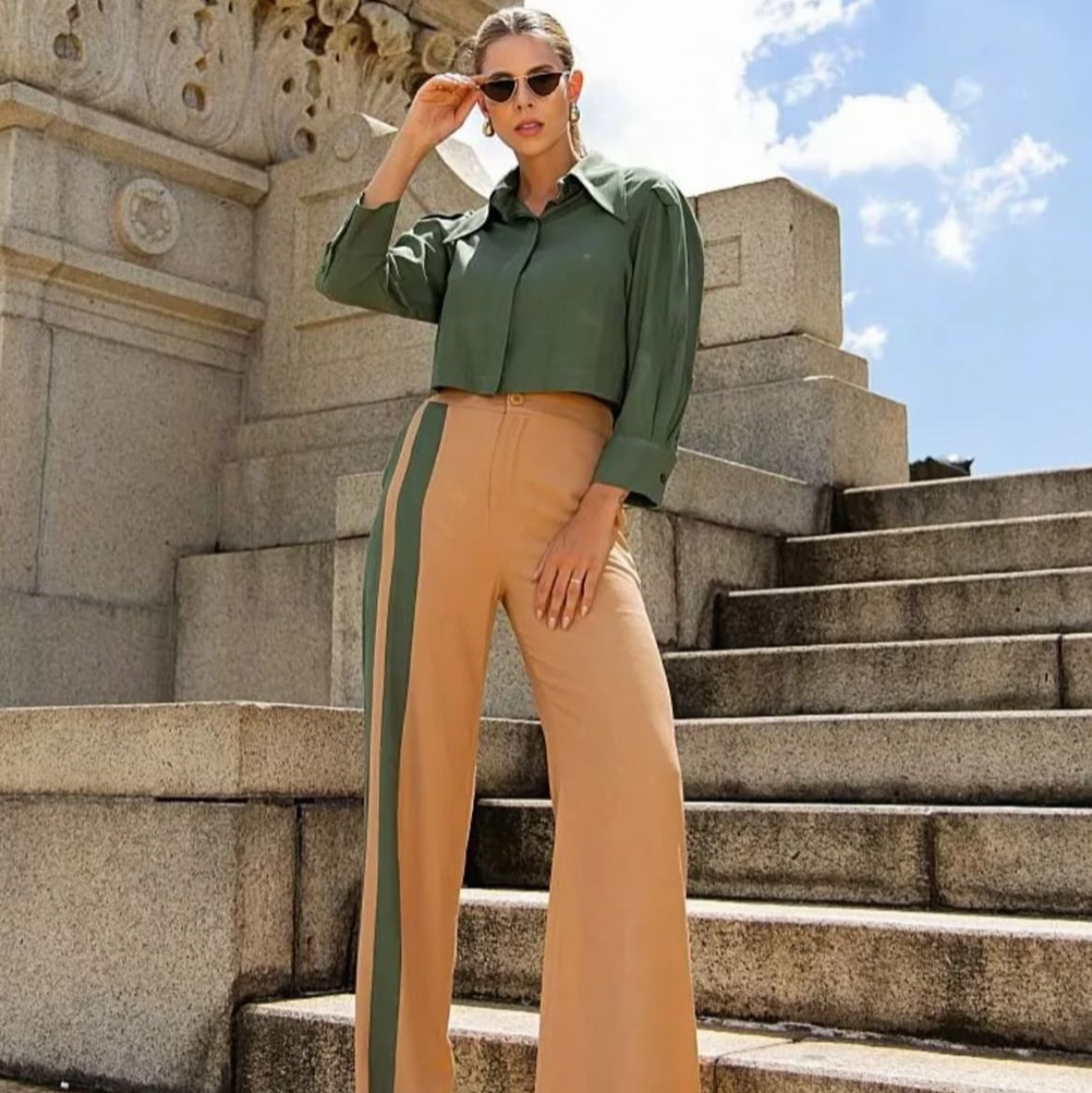 Uma calça moderna e versátil com detalhe em lista nas laterais, que confere um toque esportivo e contemporâneo. A faixa listrada percorre toda a extensão da perna, proporcionando um visual alongado e dinâmico. Feita com tecido confortável e flexível, a calça oferece ótimo caimento e liberdade de movimento, perfeita tanto para benefícios casuais quanto para looks mais despojados. As listras laterais podem vir em cores contrastantes para um destaque extra ou em tons discretos.