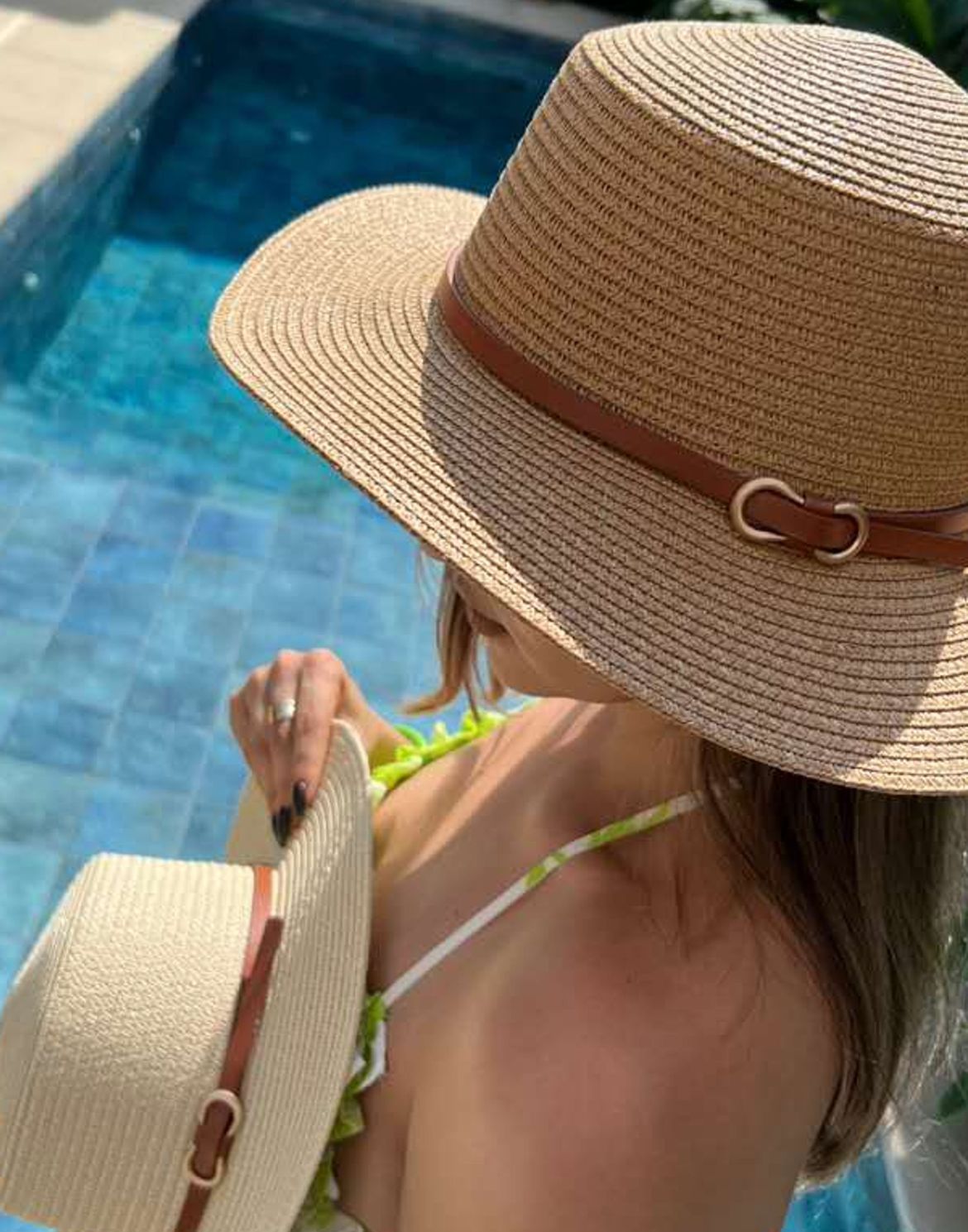 Versátil e atemporal, esse chapéu é perfeito para acompanhar momentos à beira da piscina, na praia ou em passeios ao ar livre. Ele complementa o look com charme, destacando a feminilidade e trazendo aquele ar de frescor que só os acessórios de verão conseguem transmitir.