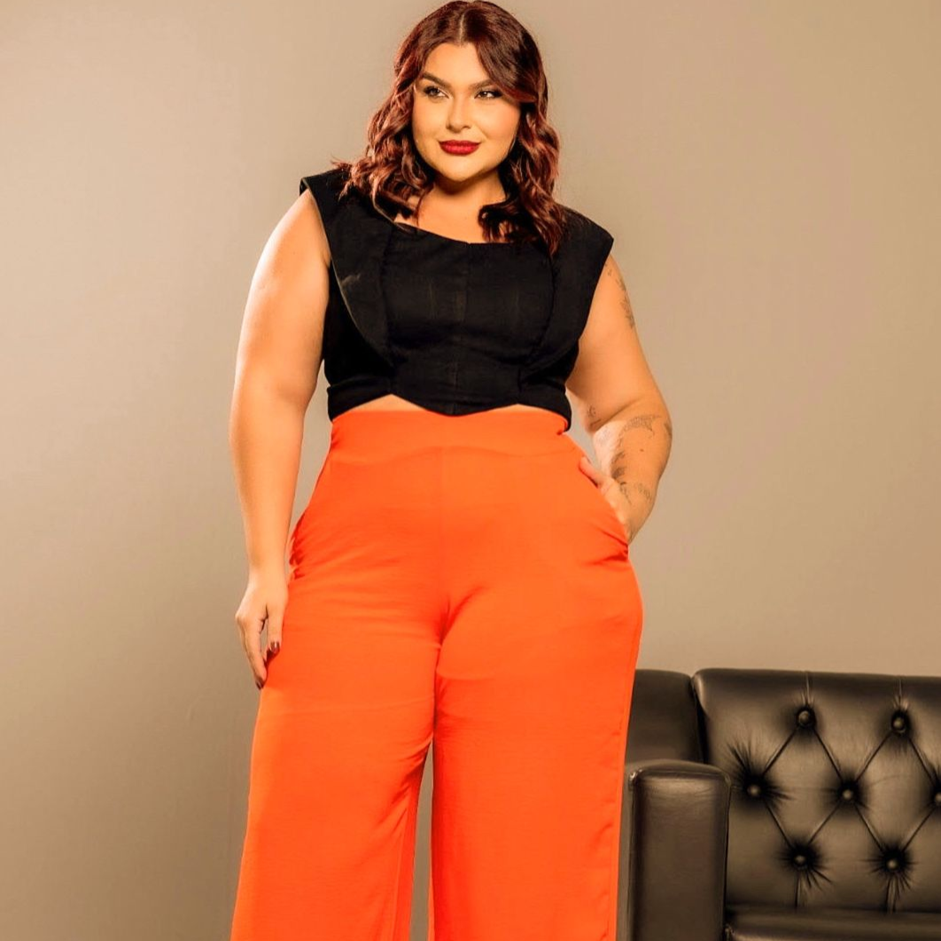 O conjunto de calça pantalona e cropped é uma escolha estilosa e confortável. Esse visual é versátil, sendo uma ótima opção tanto para conforto mais casual quanto para eventos que pedem um toque de moda, especialmente se combinado com acessórios sofisticados e calçados como conforto de salto ou plataformas.