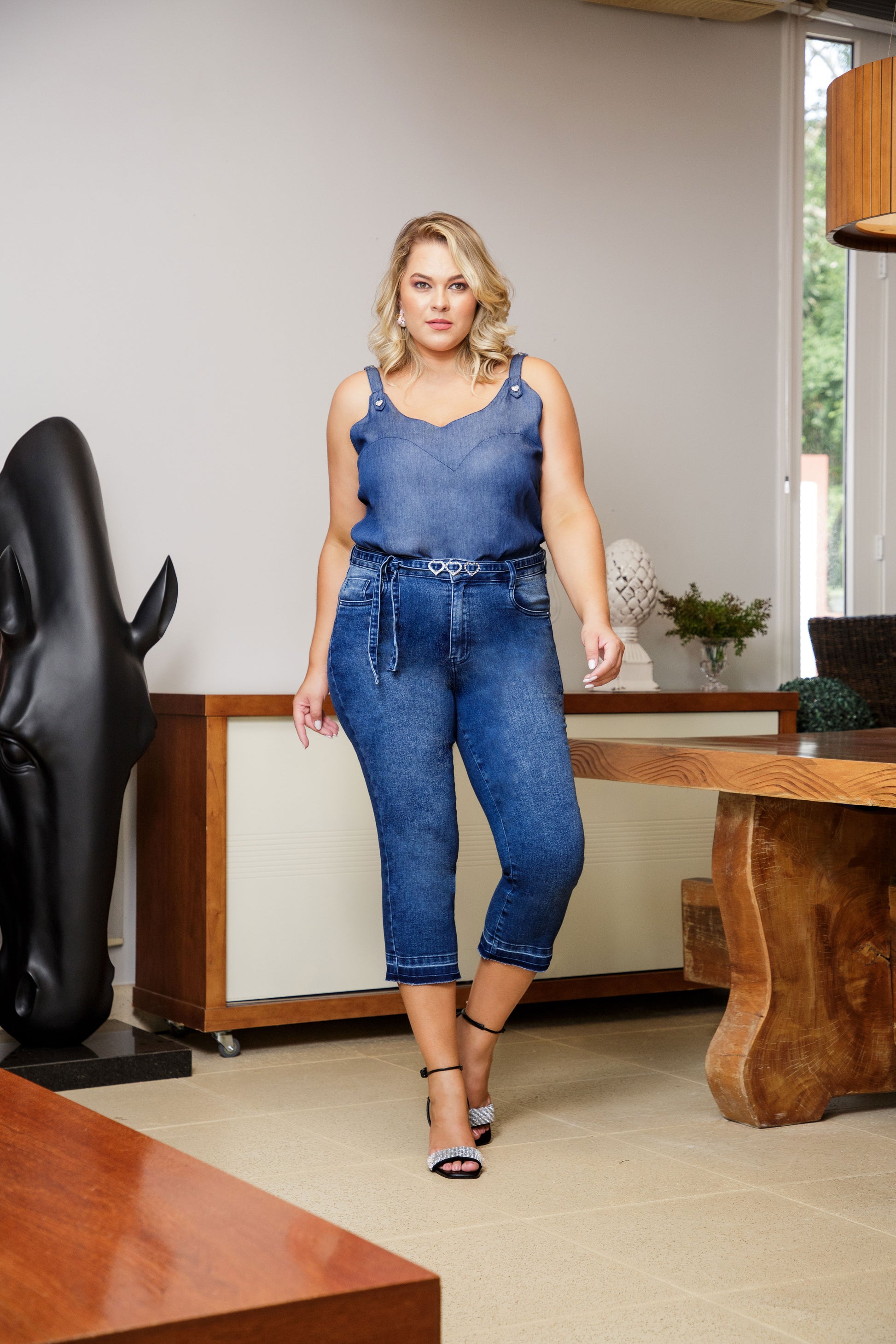 Moderna, leve e cheia de charme, a regata jeans fino é aquela peça versátil que combina com tudo! Com modelagem soltinha e decote coração sutil, ela valoriza o colo com delicadeza e traz feminilidade ao look.