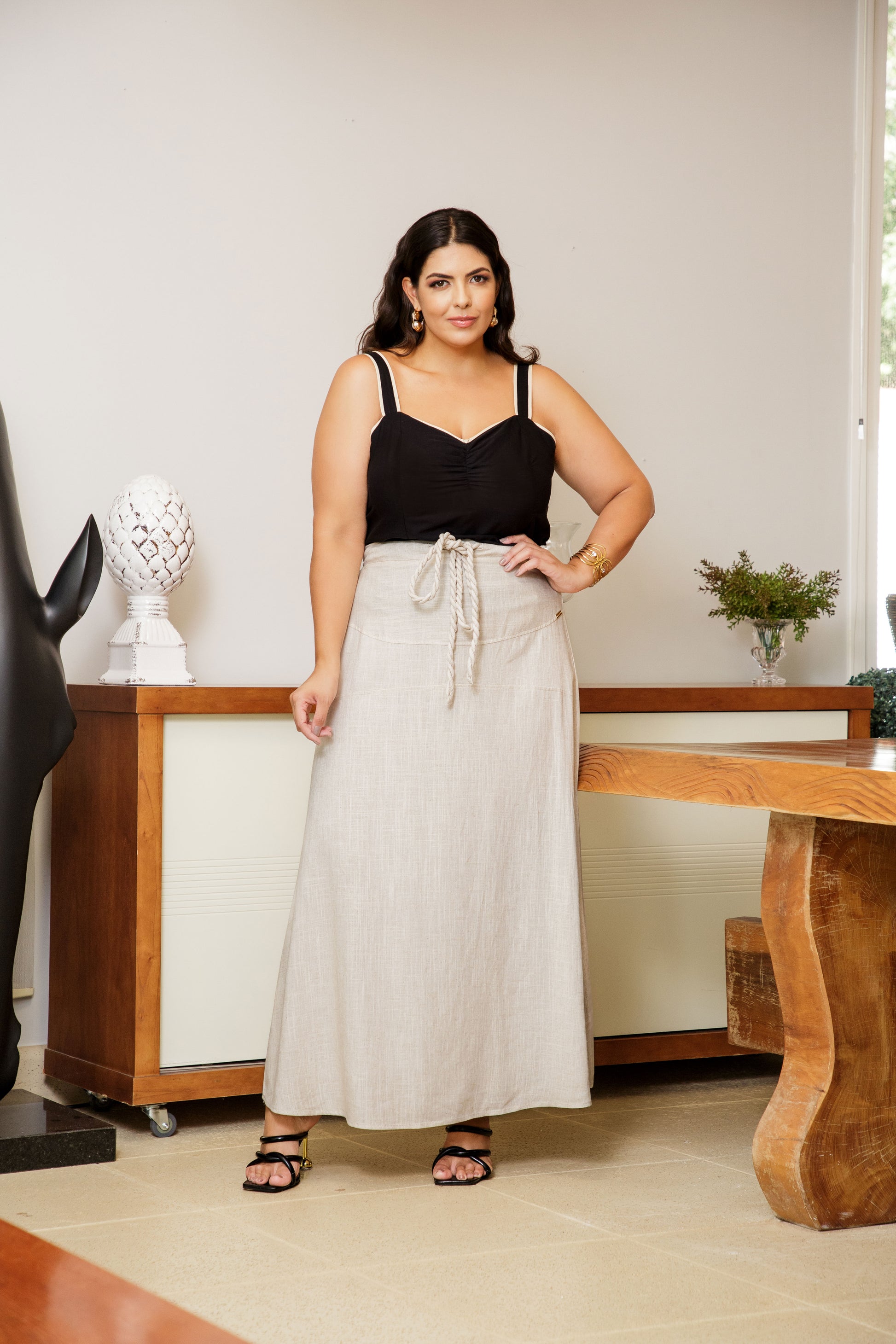 Sofisticação com leveza para os dias mais elegantes! A saia longa em linho creme é uma peça atemporal e versátil, perfeita para compor looks frescos e estilosos. Com modelagem fluida e cintura marcada, ela valoriza a silhueta com delicadeza.