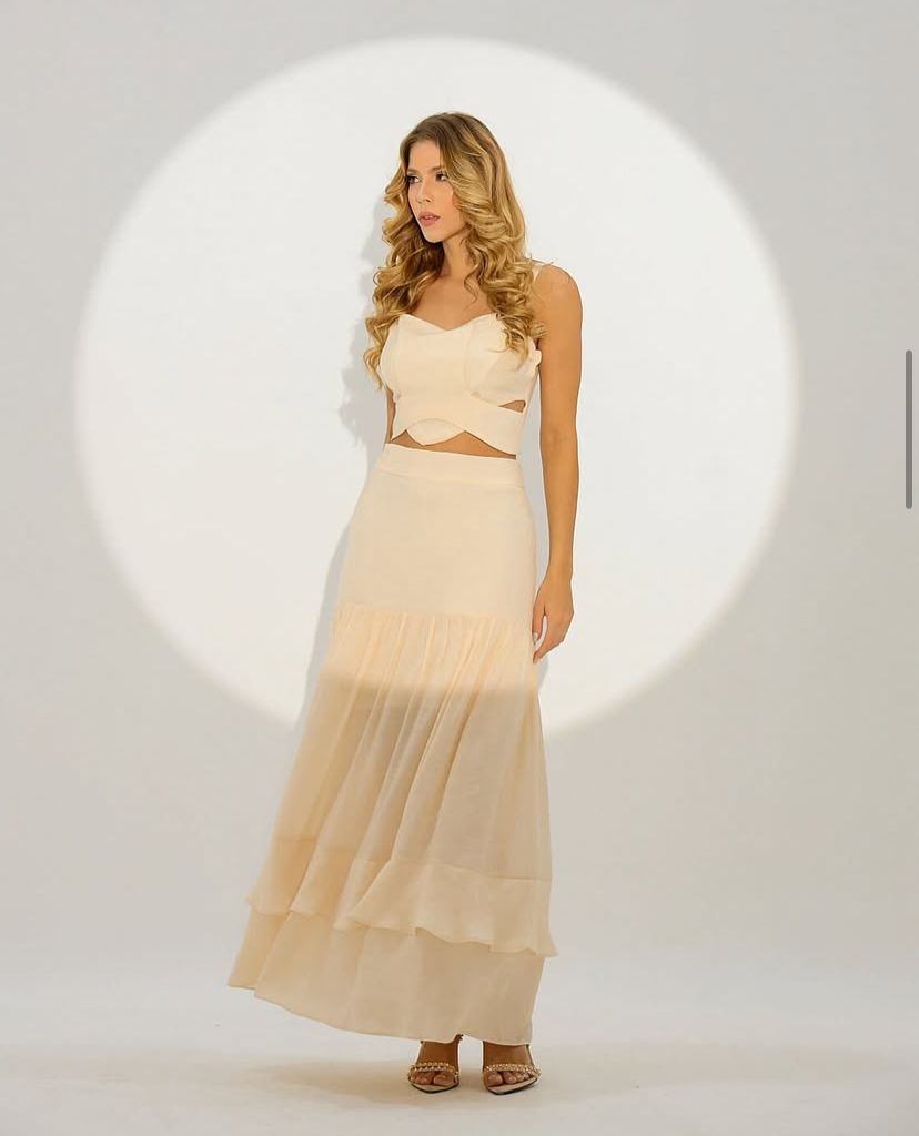 Saia longa confeccionada em tecido leve e fluído, proporcionando conforto e movimento para o seu dia a dia. Com um caimento impecável, é perfeito para compor looks elegantes e frescos, seja para um passeio casual ou uma ocasião especial. Combine com confortáveis, rasteirinhas ou até um salto para um visual sofisticado.