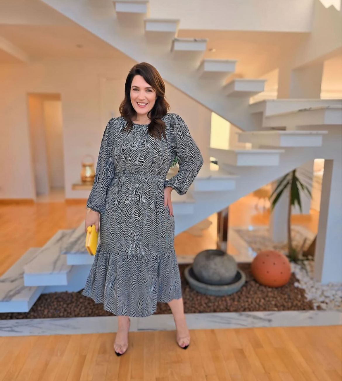 Vestido Midi Estampado Preto e Branco